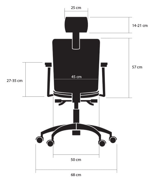 - Regulowane w pionie podłokietniki z poliuretanowymi nakładkami