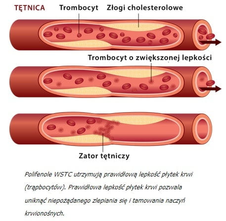 – aż 3 g polifenoli WSTC z pomidora (korzystny dla zdrowia poziom dziennego spożycia), które utrzymują prawidłową lepkość płytek krwi. Podwyższona lepkość płytek, czyli możliwość zlepiania się płytek i miejscowego zagęszczania krwi, występuje m.in. przy stresie, intensywnym uprawianiu sportu, nadwadze i wysokim poziomie cholesterolu. Polifenole WSTC utrzymują prawidłową lepkość płytek krwi. Prawidłowa lepkość płytek krwi pozwala uniknąć niepożądanego zlepiania się i tamowania naczyń krwionośnych. Jednocześnie polifenole WSTC nie mają negatywnego wpływu na prawidłowe krzepnięcie krwi w przypadku skaleczenia. Potwierdzone jest to w ośmiu badaniach klinicznych oraz przez Europejski Urząd ds. Bezpieczeństwa Żywności (EFSA). Korzystny efekt działania polifenoli WSTC z pomidora występuje u 97% osób już 1,5 godziny od spożycia oraz trwa ok. 12-18 godzin.