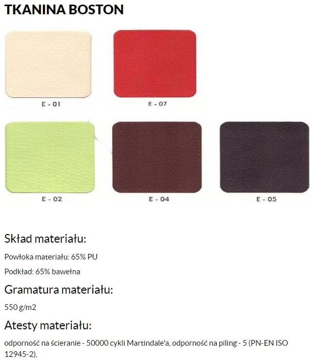 Dodatkowo dla placówek medycznych i innych zainteresowanych dostępny jest też wzornik z ekoskóry (materiału trudno brudzącego się, łatwego w zmywaniu).