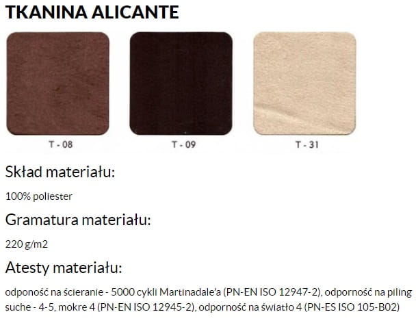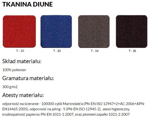 - Tapicerka z wysokogatunkowej, atestowanej tkaniny