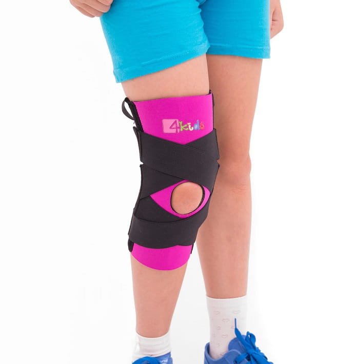 Dziecięca orteza kolana została wykonana z cienkiego, kolorowego neoprenu, który utrzymuje stałą kompresję stawu. Elastyczne taśmy obwodowe, krzyżujące się nad i pod kolanem, stabilizują udo i podudzie oraz zabezpieczają więzadła kolanowe przed niekontrolowanych ruchem skrętnym (rotacyjnym).