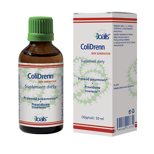 Kompleks z zawartością ekstraktów ziołowych, sprzyjający procesom oczyszczania się organizmu. Produkt został wytworzony na bazie badań prowadzonych przez Dr. Josefa Jonasza. Suplement diety Joalis ColiDren 50 ml wspomaga prawidłowe działanie jelit.