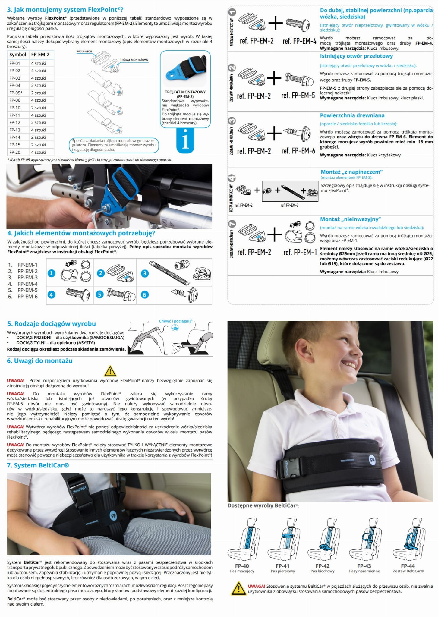UWAGA! Przed złożeniem zamówienia należy bezwzględnie zapoznać się ze sposobem montażu wyrobów FlexPoint® oraz przewodnikiem celem doboru odpowiednich ELEMENTÓW MONTAŻOWYCH odpowiadających posiadanemu rodzajowi wózka/fotelika.