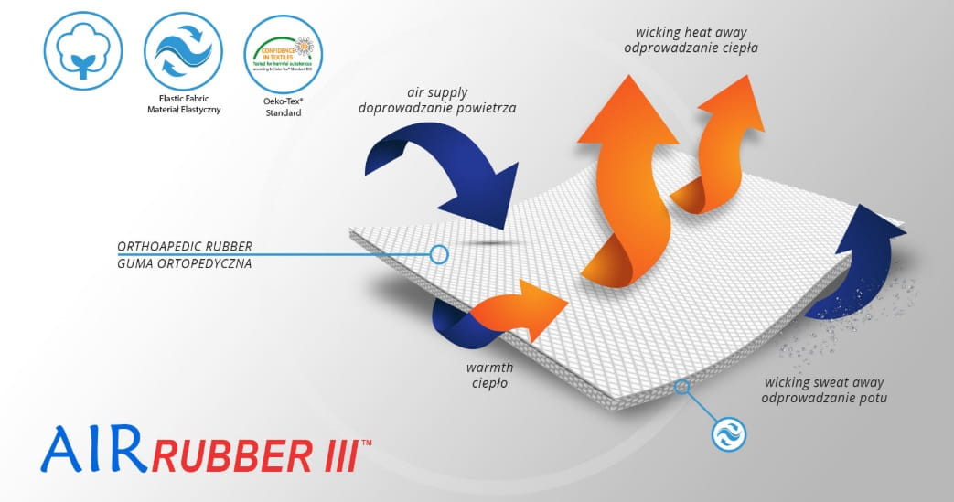 Orteza została wykonana z innowacyjnej gumy ortopedycznej AirRubber III.