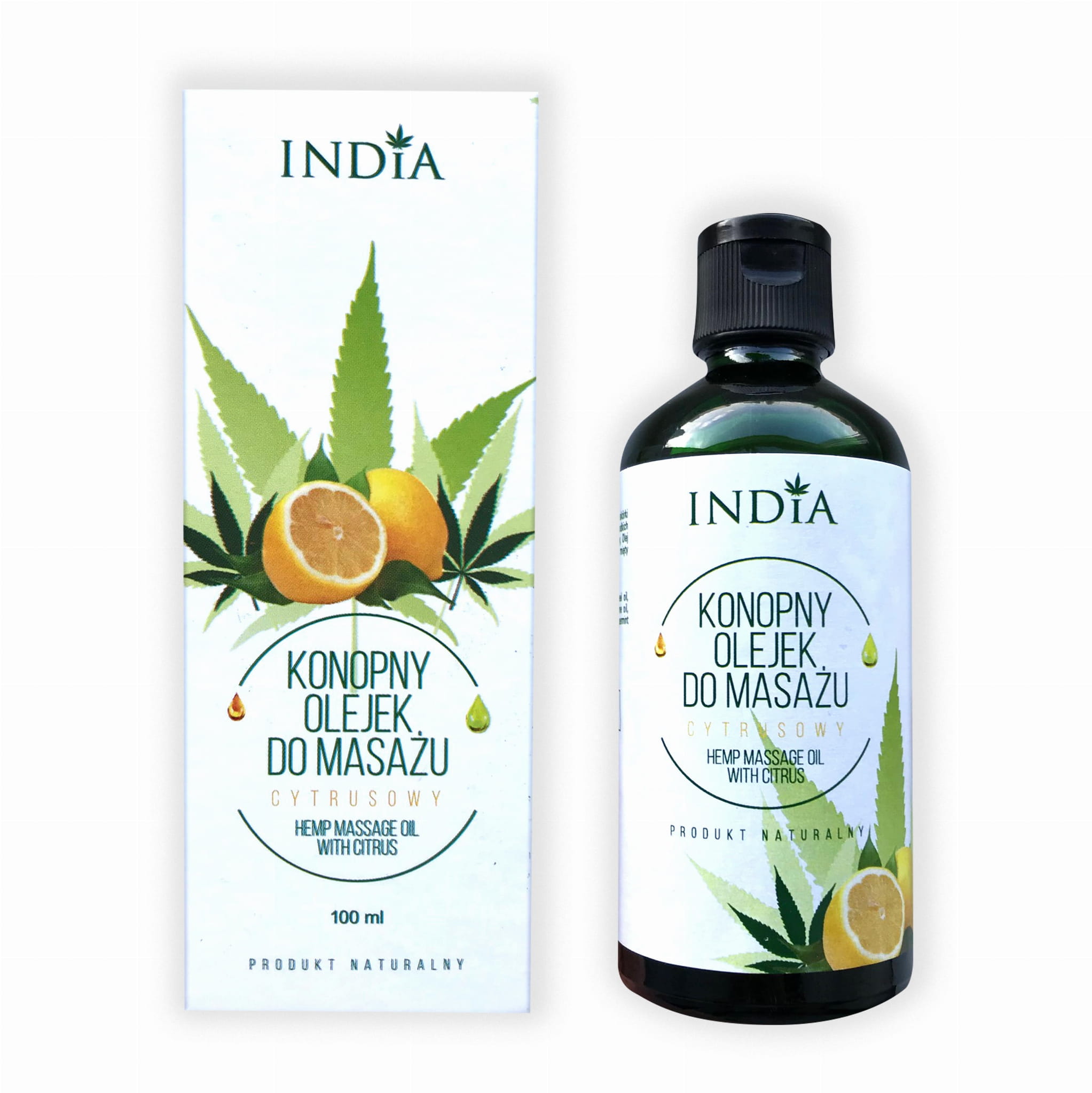 Składniki: Olej konopny, Olej z pestek moreli, Olej ze skórki cytryny, Olejek pomarańczowy, Olej ze słodkich migdałów, Zimno tłoczony olej sezamowy, Olej z awokado, Olej z pestek arbuza, Olej z mięty pieprzowej.