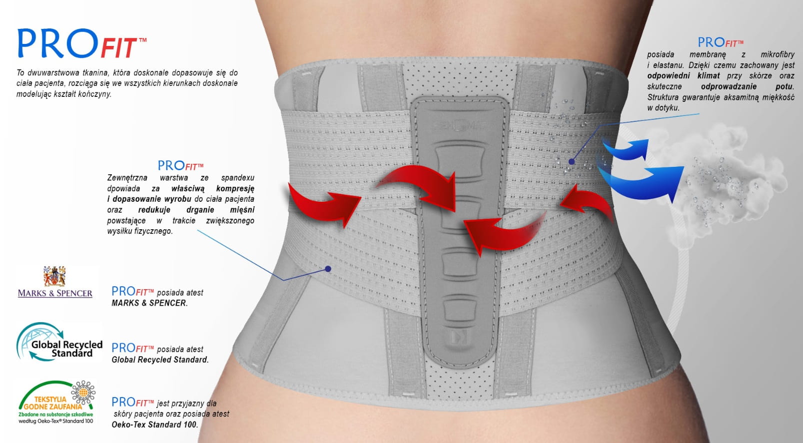 Orteza AR-SO-01 została wykonana z oddychającego i przyjaznego dla skóry surowca ProFit™.