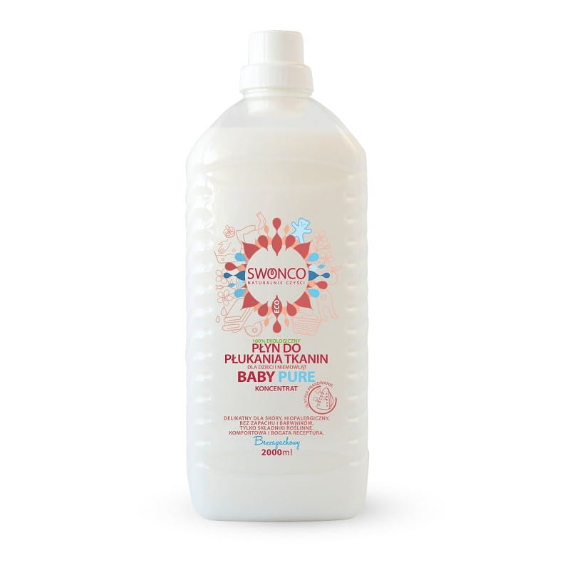 Płyn do płukania ubranek dziecięcych i niemowlęcych, 2L bezzapachowy - Działa kojąco w przypadku podrażnienia skóry - SWONCO (NM)