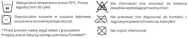 Granulat - produkt został wypełniony bardzo lekkimi, drobnymi kuleczkami polistyrenu. Dzięki temu, że granulki przemieszczają się wewnątrz wyrobu w sposób luźny i płynny, znacznie łatwiej jest dopasować go do kształtu ciała użytkownika. Dodatkowo, w poduszce znajduje się powietrze, które za sprawą paroprzepuszczalnej powierzchni PureMed™ wydostaje się na zewnątrz, opływając ciało pacjenta.