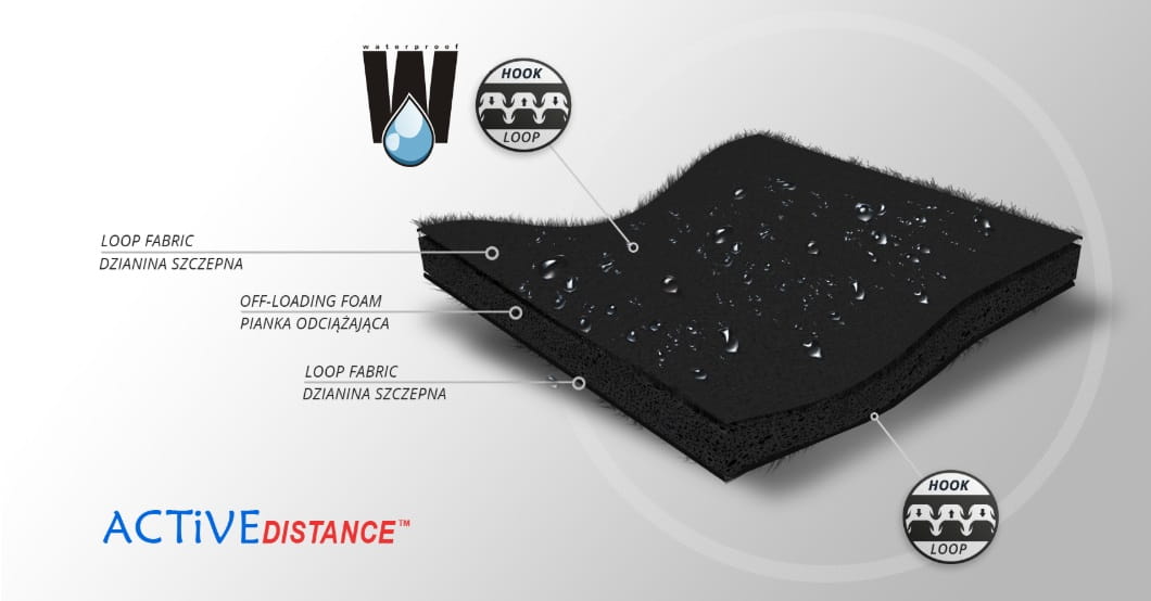 Surowiec ten to aktywny trójwarstwowy materiał, który składa się z bardzo mocnej nierozciągliwej okładziny poliamidowej, posiadającej charakterystykę samoszczepną, z pianki komfortowej oraz bawełnianej dzianiny frotte.